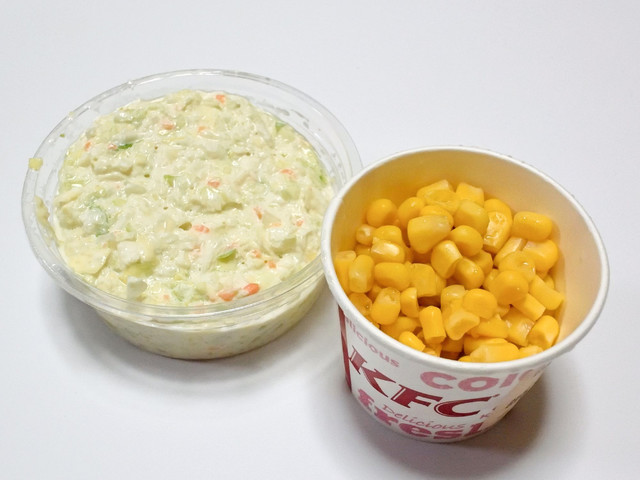 コールスローサラダと、コーンサラダを買いました。