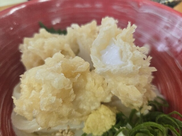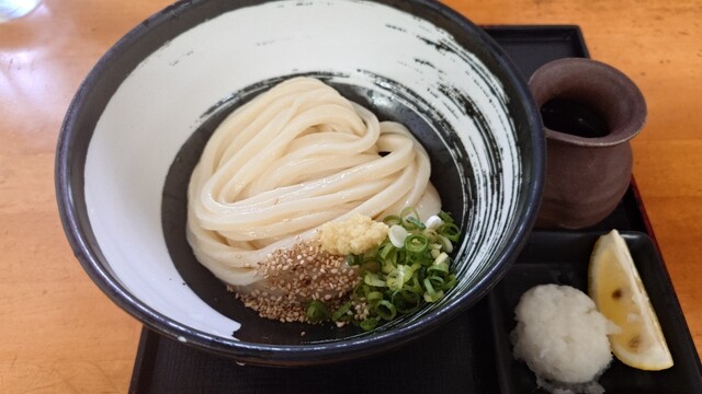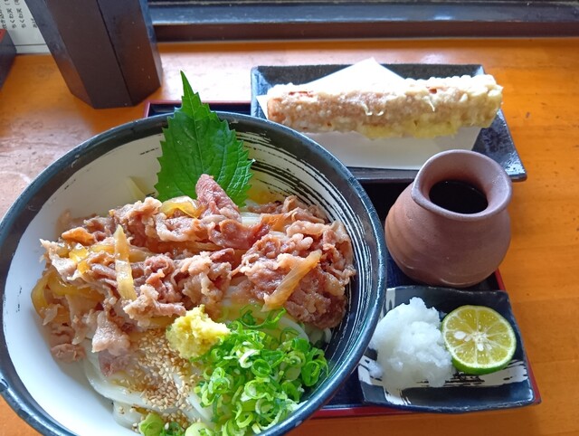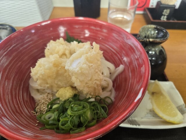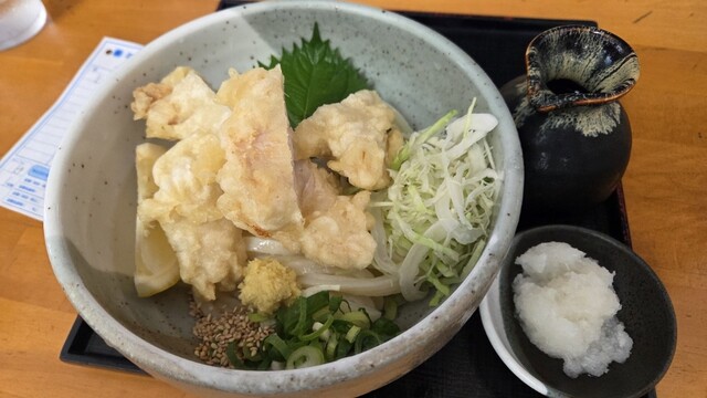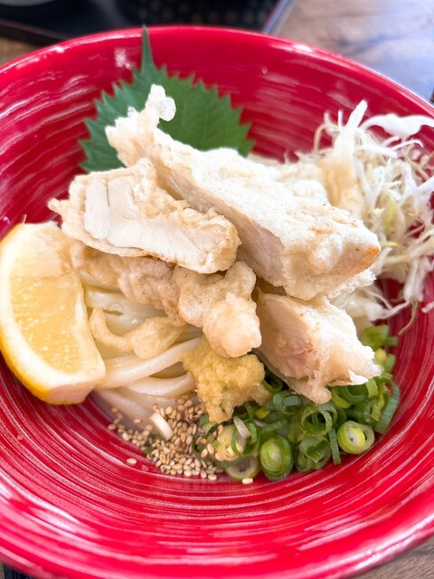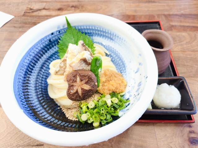 祝日の10時に来店。駐車場も空いており、店内も並ばずに入れました。名物の肉かすうどんと温玉ちく天ぶっかけを注文。麺は店主がこだわりを見せ、うどんは生き物といっており、凄くコシのある食べ応えある麺でした...