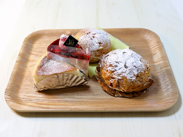 街のお菓子屋さんのようなお店で、ショーケースには洋菓子が並んでいましたが、和菓子も販売していました。NYチーズケーキはチーズの風味が良く、なめらかな舌触りも良かったです。苺とブルーベリーのタルトはとても美味しく、ベリー系の部分とレアな部分が美味しく調和していて、土台のタルトの食感も良かったです。正確なケーキ名を憶えていなく、苺とブルーベリーのタルトとしました。パイシューとシュークリームも美味しかったです。異なる食感の生地がそれぞれ美味しさを引き立てていました。