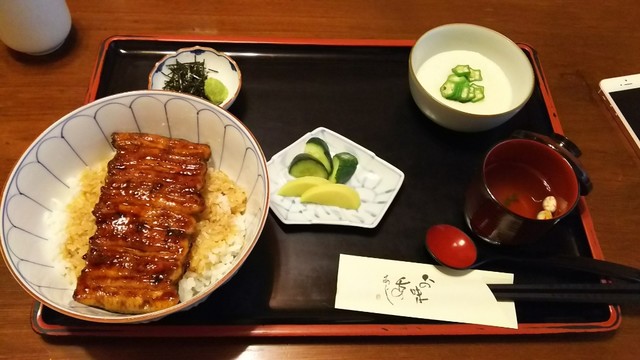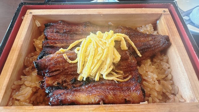 鹿児島銀行鴨池支店近く。 「うな丼 松(肝吸い付き)」をオーダー。 ご飯の上に、うなぎ2切れ、ご飯の中にうなぎ1切れが入っている。炭火焼きの香ばしさと鰻の柔らかい食感、タレ... 詳細を見る
