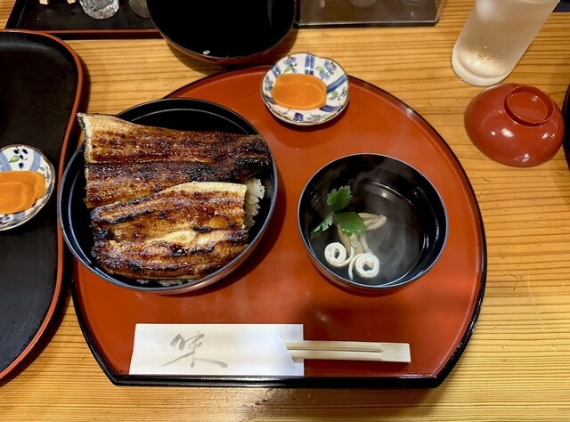 平日のみ1ヶ月前から電話予約可能ということ、予約開始日に電話で予約しました。予約時にうな丼を注文。うな重はうなぎが別皿で提供さるます。肝吸付きで¥3,800。