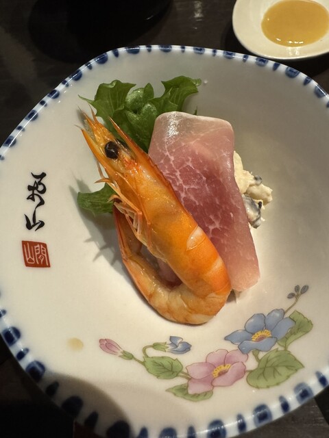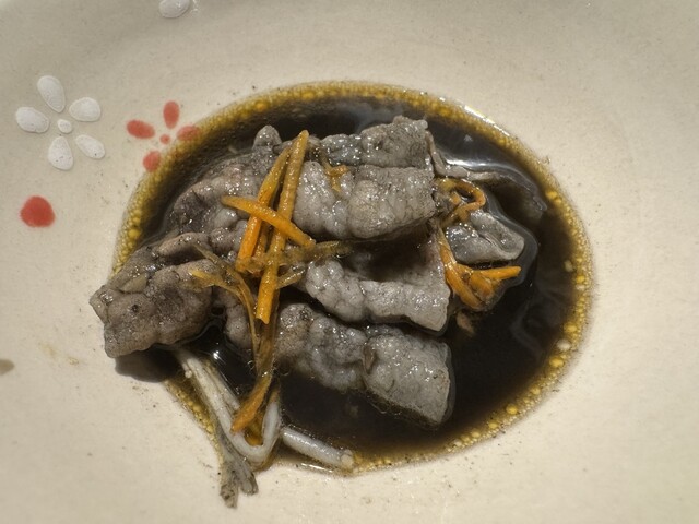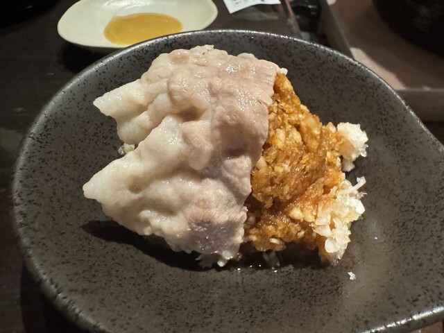 XO醤風味の黒だし・鰹/鰯/鯖など混合節を使用した和だし等でいただく豚しゃぶは八幡ならでは。