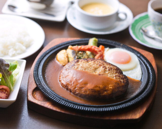 サラダは見ただけで丁寧にお仕事されているなぁという印象。ハンバーグはふわふわで柔らかい食感です。肉肉しさはありませんので好みが...