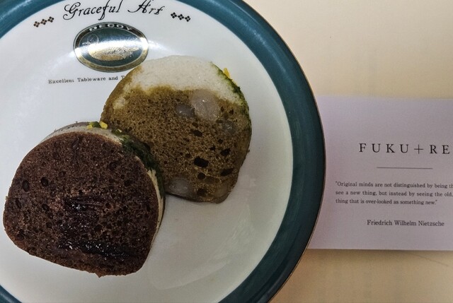鹿児島県の郷土菓子“ふくれ菓子”を地元に伝わる手法と素材を活かしながら、和でも洋でもない新しいスタイルの蒸菓子に発展させたFUKU+RE(フクレ)。鹿児島市役所近く、天文館からも徒歩圏内の店舗でふくれ菓子の他、鹿児島の素材を使った焼き菓子を手作りしています。以前は2階にありましたが、現在は同じビルの1階に売店があります。テイクアウト専門ですが、お隣のカフェ「キッサコ」さんでイートインできます。
