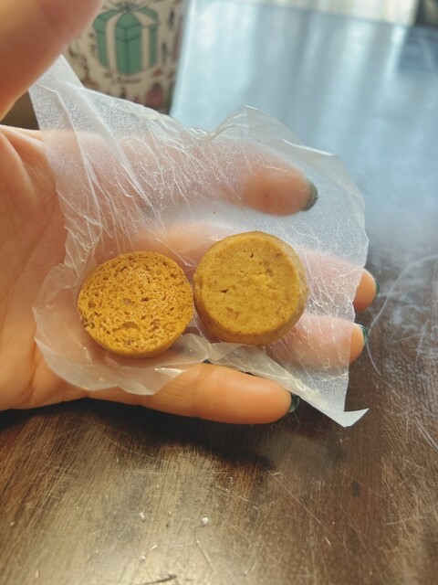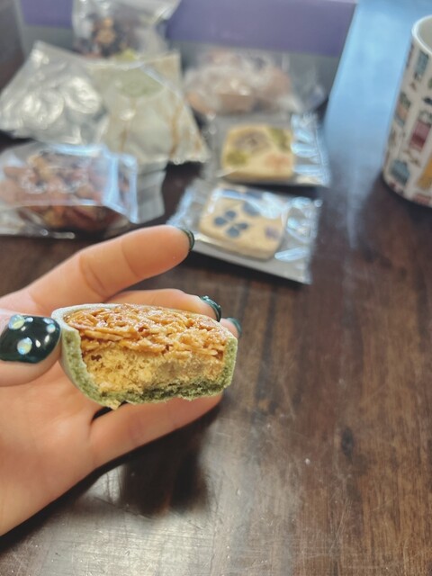 食べたのは「フクロウのフロランタン」。 その名のとおりフクロウの形をしたフロランタンで、ヨモギ風味の最中皮に芋飴でキャラメリゼしたアーモンドとバターサブレを詰めた和風フロランタン... 詳細を見る