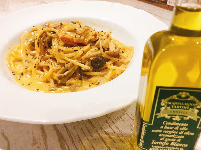 当店のオススメはモチモチ食感の「究極の生パスタ」で作るウニトマトクリームスパゲティ。