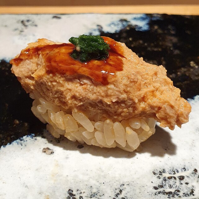 雑居ビルの2階にある。エントランスはかなり古びているが、店内はレトロな感じにリノベーションされている。ただ、席の間がつまりすぎで、居心地がよくない。兄弟でやっているとのこと、一品物と握り担当といった役割分担。握り担当の方が接客もやり、一品物担当の方は寡黙。