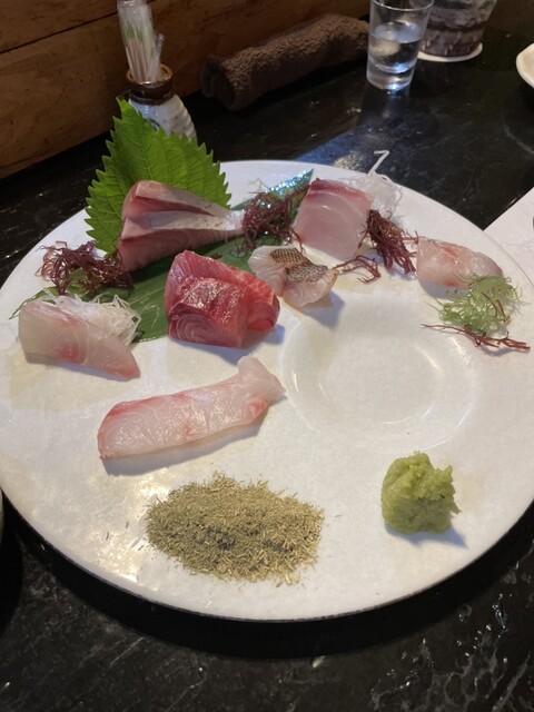 新鮮な魚介を取り揃えたお店で、鹿児島や奄美諸島周辺でとれる魚介をふんだんに使った料理が持ち味。そんな料理が1品目からでてきたらやっぱりお酒が欲しくなる。案の定、厳選された日本酒を取り揃えており種類も豊富。