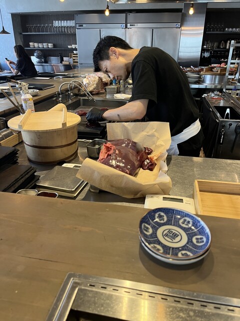 カウンターでの食事は、スタッフの人の声掛けが嬉しいです。炭で焼きましょうか?...