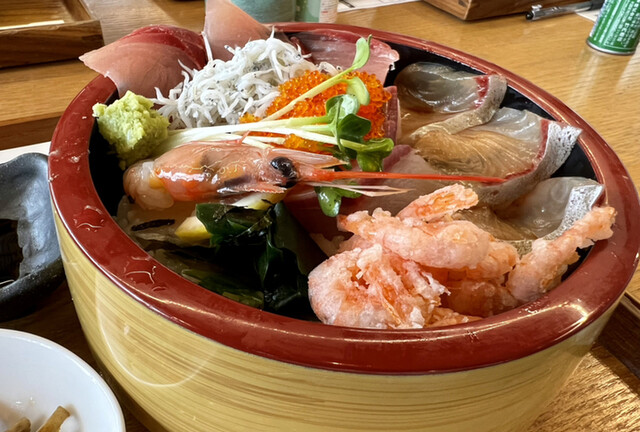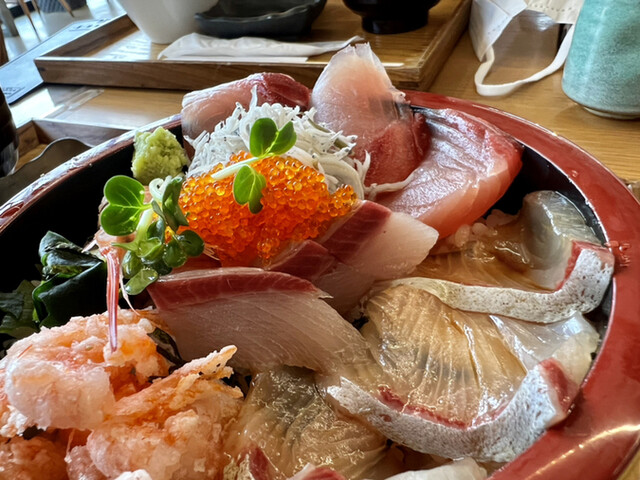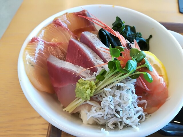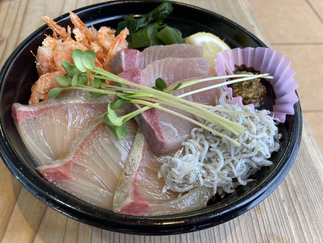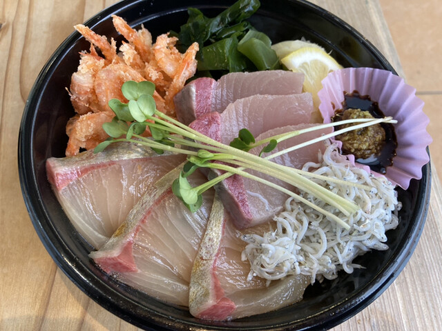 垂水ブランドのブリ・カンパチやエビなど鮮度バツグンの食材を余すところなく贅沢に使用した丼やお造り、和定食はどれも食べ応え十分。