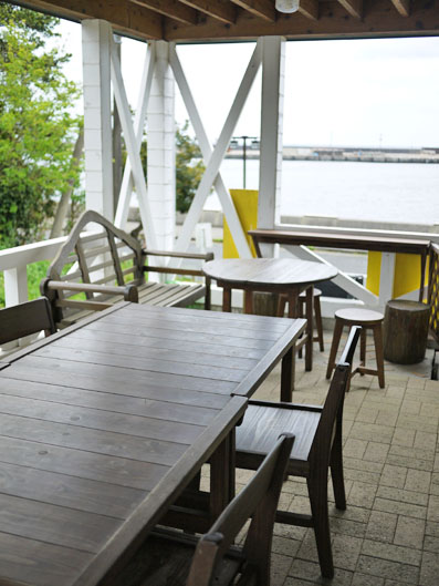 「カフェスマイリー」は、安房港を望む川沿いに位置します。