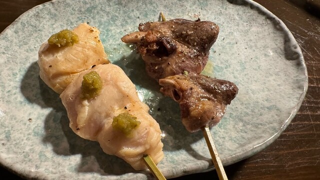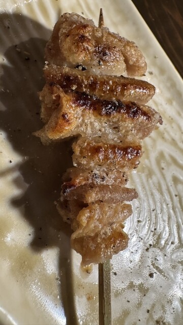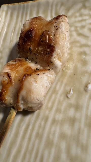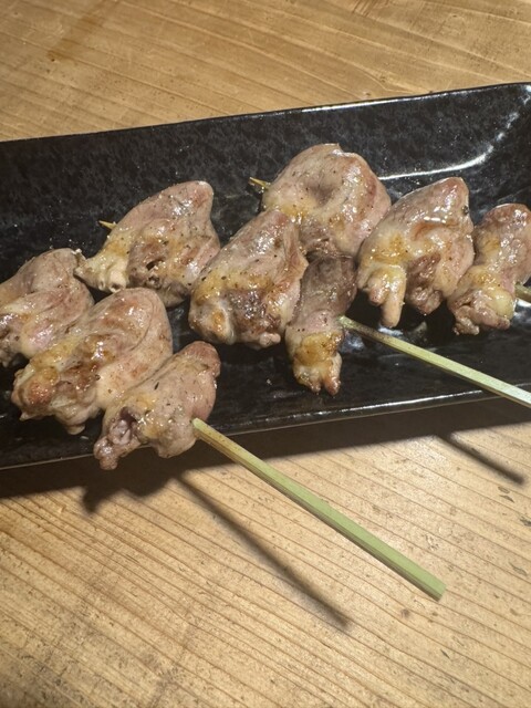 焼き鳥は歯応えあり美味しい。