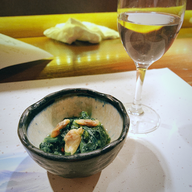 ここは横浜駅きた西改札から徒歩3分の便利なローケーション、特に、創作串料理には定評があります! 先ずは、グラスの神泡プレモルで! お通しは唐辛子のピリッと辛い、浅利と菜... 詳細を見る