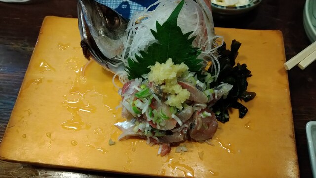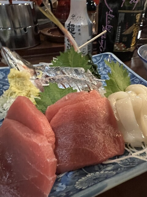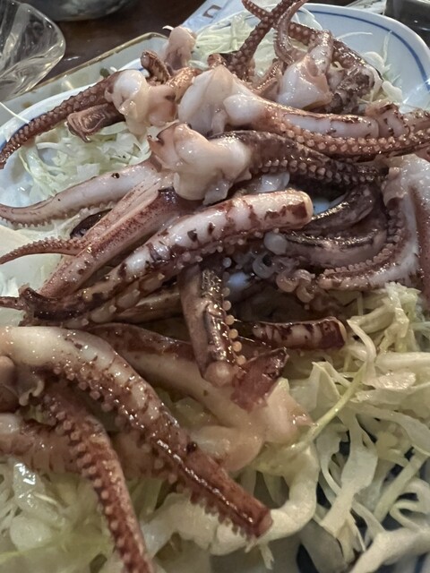イサキはポン酢ともみじでさっぱりとカツオは生姜醤油で。イカは新鮮で大葉を巻いて楽しみました。
