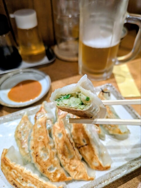 横浜駅地下街にある人気餃子店です。イートインスペースが少ないのでタイミングによっては並びますが回転が良いのであまり待たずに入店出来ました。まん天餃子、しそ餃子、キムチともやしのナム... 詳細を見る