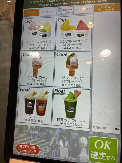 今回はミニサイズのピッコロカップ(400円)を注文。