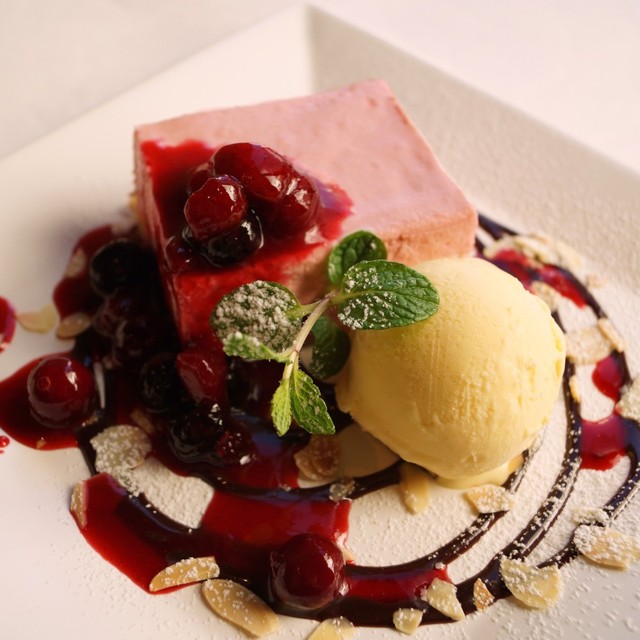 フランボワーズのティラミスとバニラアイス (by お店)
