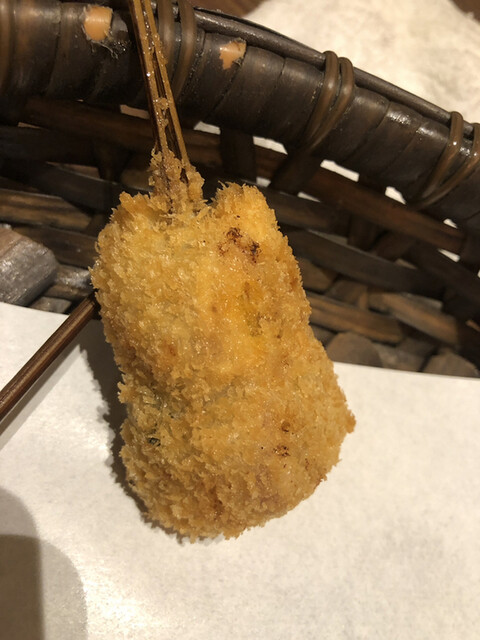 串揚げの醍醐味『おまかせ』はストップとおっしゃって頂くまで串揚げをご提供します。おきまりコース\3,800~季節により旬のおすすめ料理をご用意しております。