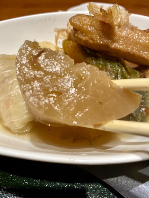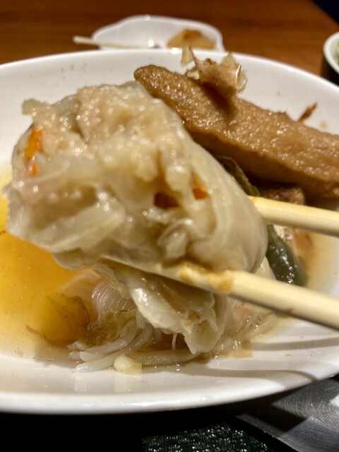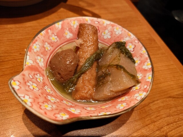 横浜駅北側の鶴屋町にあるおでん屋さんです。おでんの盛合せなど美味しかったですが、印象深かったのはトンカツのおでん。ふちゃふちゃになってしまうかと思いきや、ちゃんと衣も維持されており... 詳細を見る
