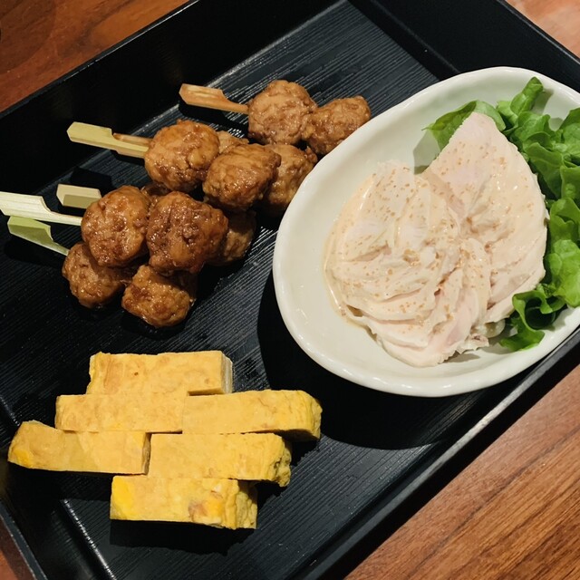 □前菜 :○蒸し鶏、玉子焼、つくね