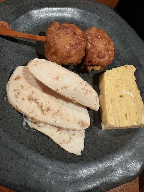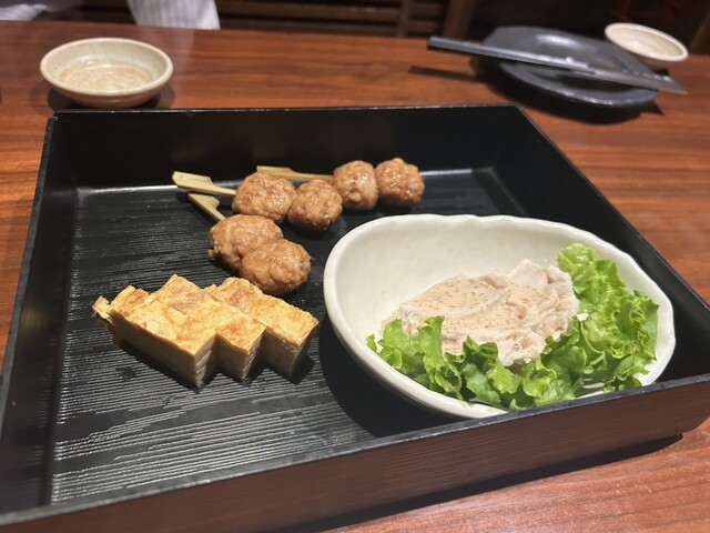 ・前菜 :卵焼き、つくね、蒸し鶏