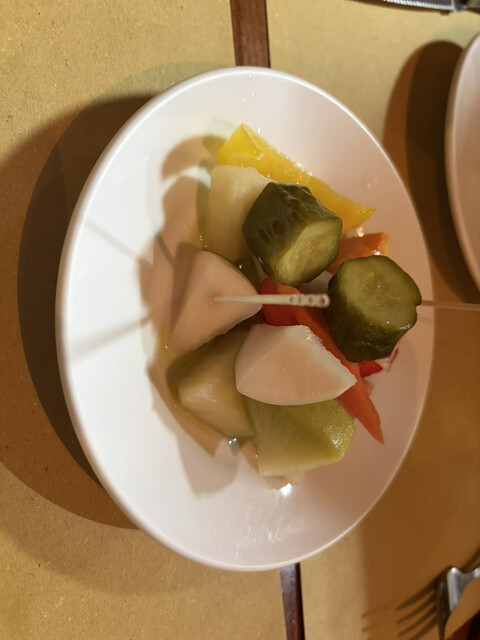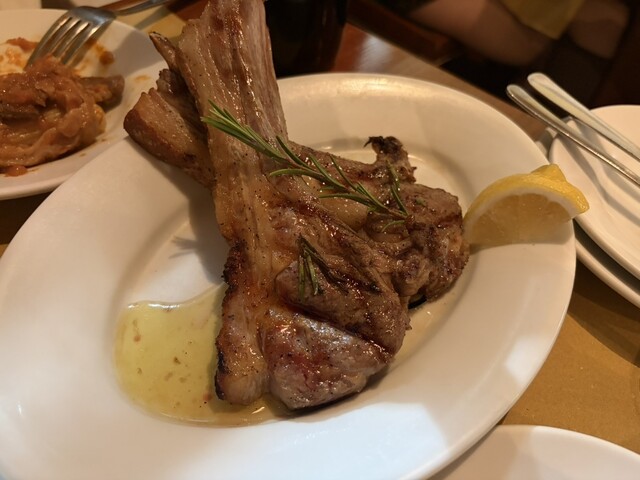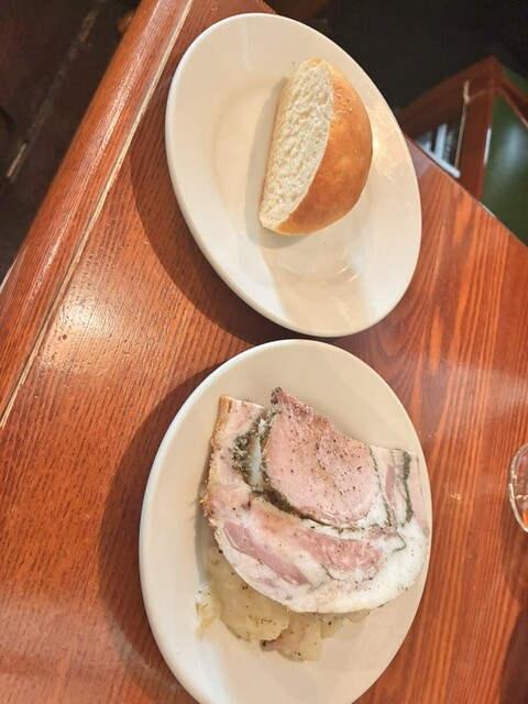前菜がふたつ付いてます、パンも食べてパスタも食べるとお腹いっぱいだけどお肉食べたくて頼んだらボリュームたっぷりで一瞬ひるみましたが美味しいので食べちゃいました