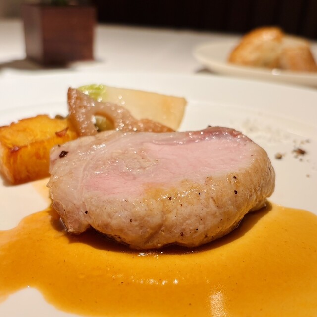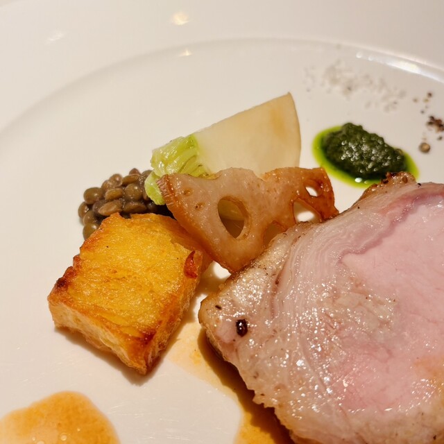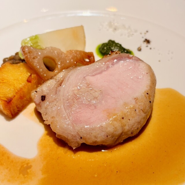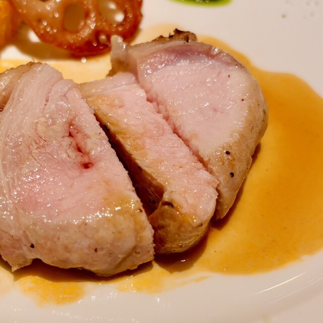 薄いピンクを保った完璧な火通しがまた、豚肉の良さを端的に表現しています。