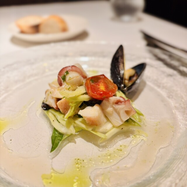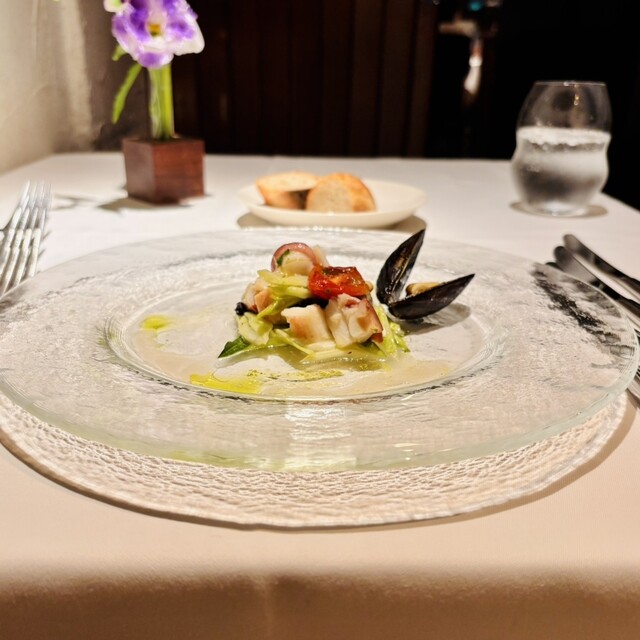 真蛸とムール貝を軽くマリネしてあり、この塩加減・酢加減が絶妙!