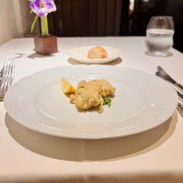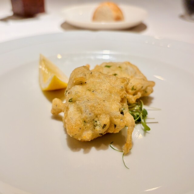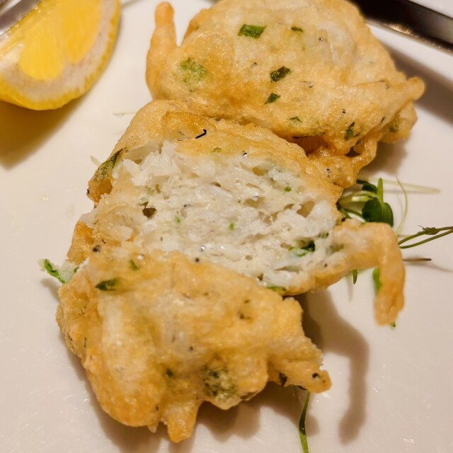 そのまま生姜醤油で行けそうな新鮮な個体をふっくらと揚げており、まあ〜〜贅沢な味わい。