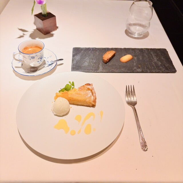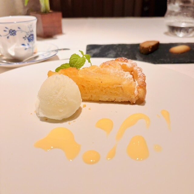 ドルチェは洋梨のタルトとミルクのジェラート。