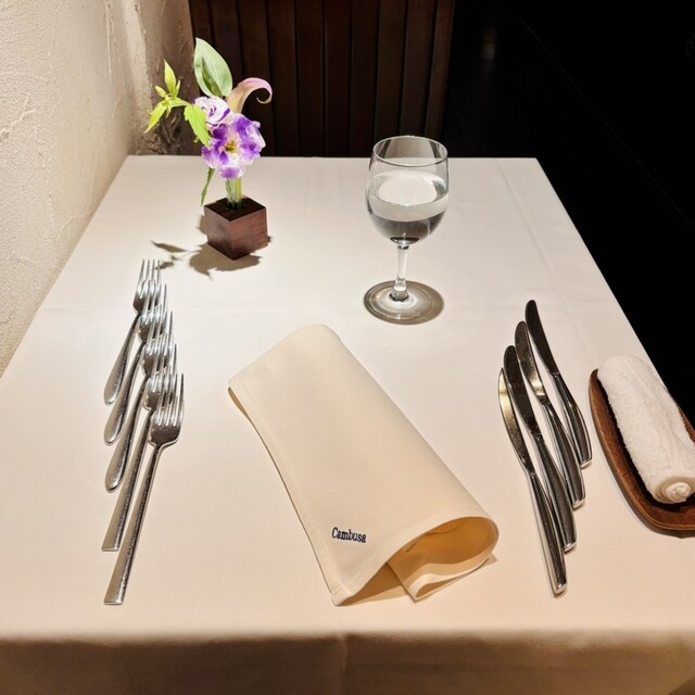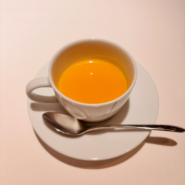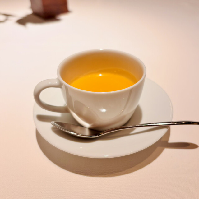 店舗公式サイトに記載の「シェフのおまかせコース」に、食前のお茶が追加されたものと思われます。