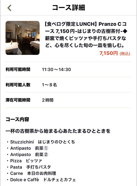 オーダーは食べログからの予約限定となる、プランツォCコース。