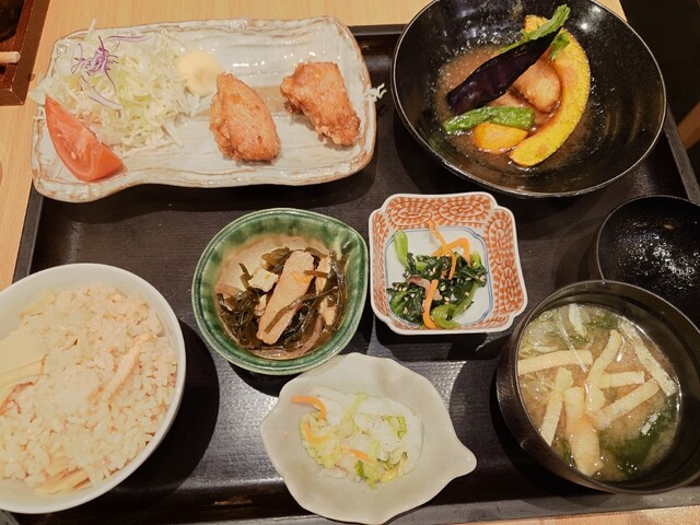 仕事帰りに気軽に立ち寄れる定食屋として、旬の料理と日本酒を提供しています。大かまどで炊き上げた新潟県長岡産の直送米は、白米・雑穀・炊き込みご飯から選べ、おかわり自由◎全国各地から産地直送の魚を活かした煮付けや刺身は、毎朝新鮮な素材を厳選しています。ウッド長の落ち着いた店内には、テーブルやカウンター、お座敷、掘りごたつや、8名まで利用可能な個室を完備。日本酒や果実酒と共に、心温まるひとときを。