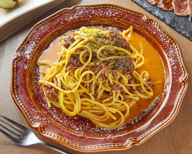 熟成牛すじ煮込みのクリームパスタ (by お店)