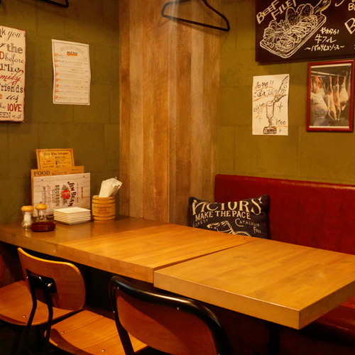 ウッド調のカジュアルな雰囲気の店内には、テーブル席の他完全個室やカップルシートの半個室など用途に合わせて使える席が設けられています。