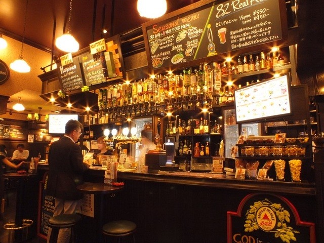 横浜駅西口から徒歩3分、ルミノス横浜ビル1階にある英国風パブ「82」。店内はアンティーク調の家具と木製カウンターが並び、重厚で落ち着いた雰囲気が広がっています。キャッシュオンデリバリー方式なので、自分のペースでビールも料理も気軽に注文できるのが魅力。テラス席では喫煙もOKで、外の開放感も楽しめました 。
