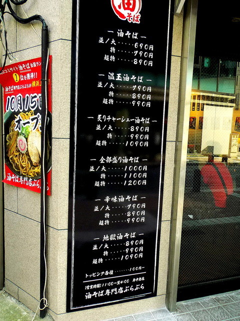 「シンプルでいつまでも飽きない味」をコンセプトに!また麺を食べ終えたどんぶりに、おすすめは卓上にご用意いたしました熱々のスープを入れて召し上がって頂くという、新しい食べ方のご提案もさせていただいております。食べた後のしつこさを残さずすっきりとした気分でお帰りいただけ、確実に油そばの概念が変わります! また横浜店は大盛・特盛まで同料金!伝統と革新の味、ぶらぶらの油そば横浜店を是非ともご堪能くださいま...せ