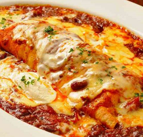 メキシカンエンチラーダグラタン(サラダ+パン) (by お店)