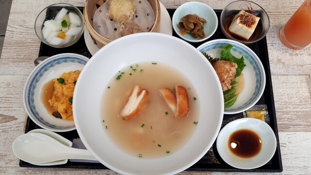 ⚫︎注文 1.香港風お粥と点心のセット 2.エッグベネディクトプレート (いずれもサラダ・小皿・パン・ドリンク付) ・香港風お粥と点心のセット 鶏ガラベースの粥は粒を... 詳細を見る