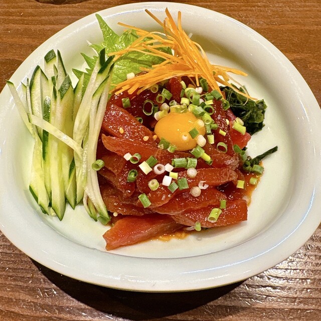 ○まぐろユッケ