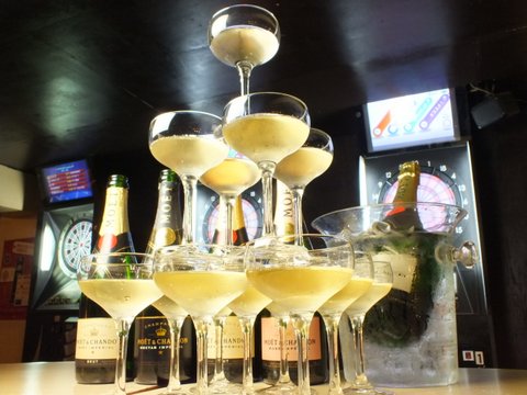 当店は、カウンター・ダーツ・ビリヤードとそれぞれの箇所が独立しておりますので、目的に応じたサービスが可能となっております。また、プロジェクターや音響も完備。シャンパンタワーもありますので、結婚式の二次会や歓送迎会、その他パーティー等も20~100名様までご利用可能となっております。