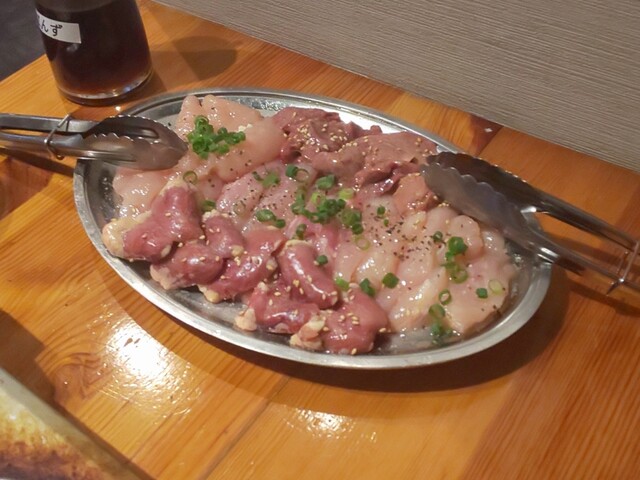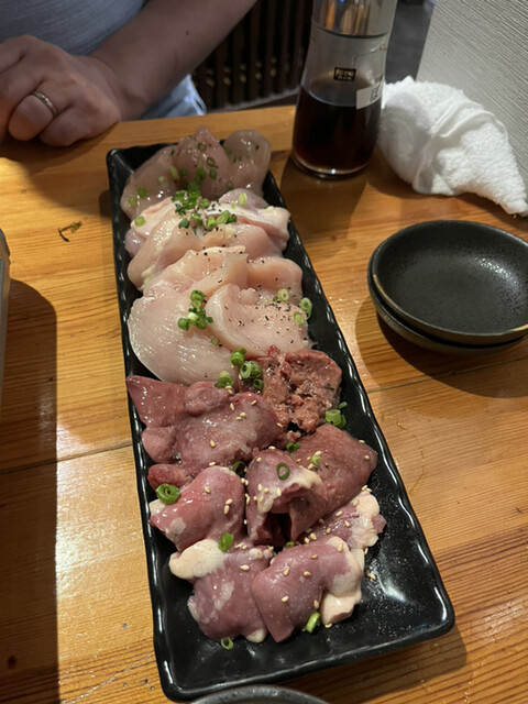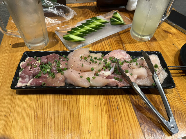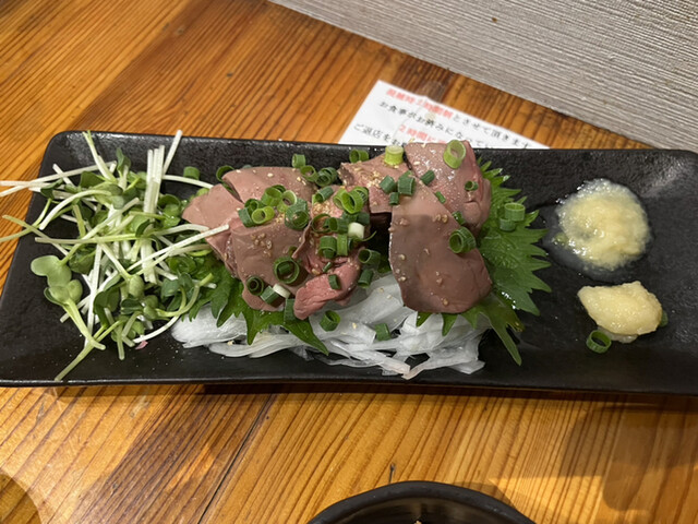 最初に頼んだのは鶏たたき。見た瞬間「絶対美味しいやつ…!」と思ったけど、その予感大当たり。表面は軽く炙られて香ばしく、中はしっとりレアでとろける感じ。ネギ・玉ねぎ・わさび...