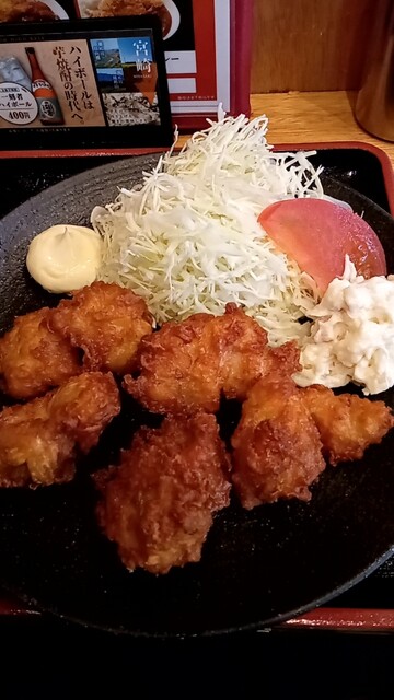 串かつ居酒屋のランチメニューから、唐揚げ定食をいただく。ご飯と味噌汁が美味しく、満足度は上がった。