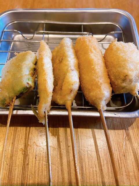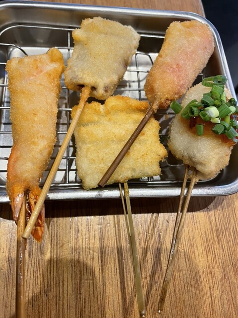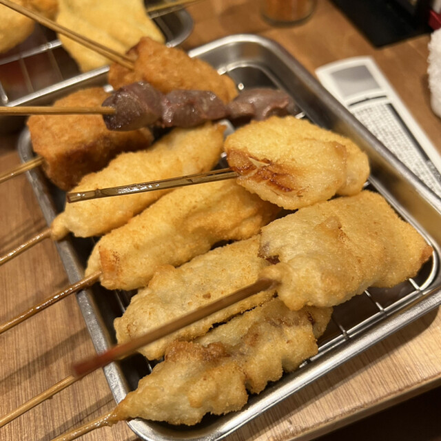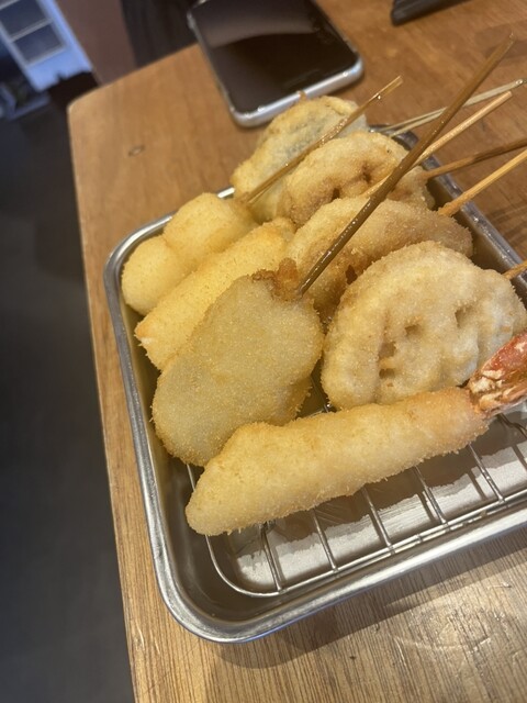 ガッツリと飲むのもよし、ちょい飲みもよしで気軽に立ち寄れるお店です。お洒落な串揚げで軽い食感、油がしつこいこともない、だけどビールに合うとても最高なおつまみになります。お店も比較的綺麗な感じでグッドです。