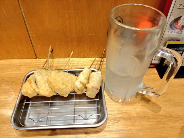 一言で言うなら「串カツ田中っぽい店」です。安く飲みながら串カツや一品料理をつまむスタイル。