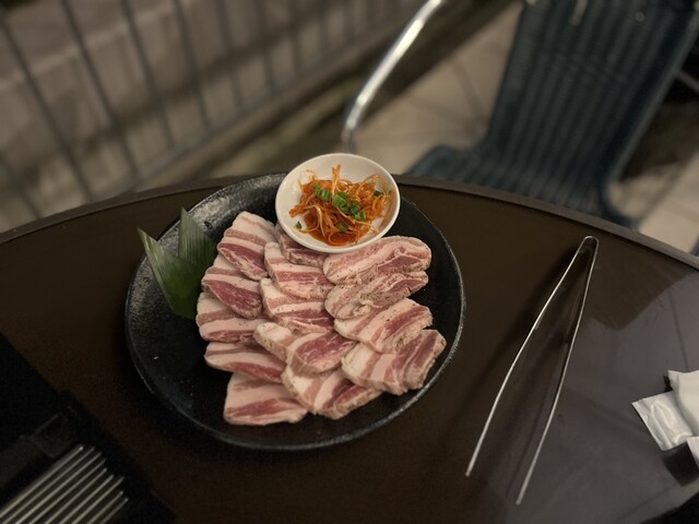 Cセットの中で、大盛サムギョプサル定食(2000円)に生中(638円)にしました。