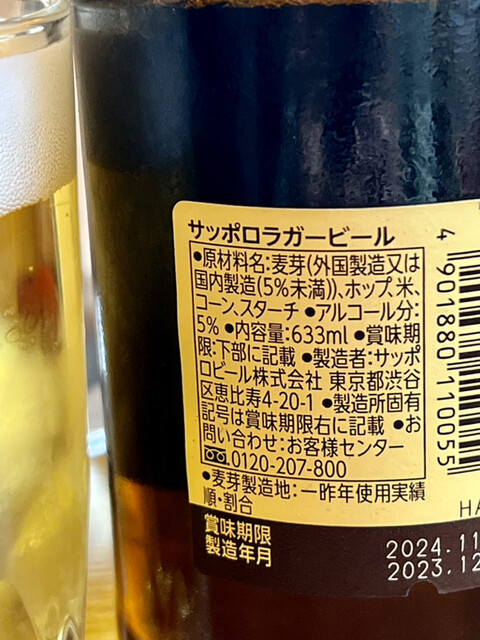 ◇サッポロラガー赤星 大瓶 490円