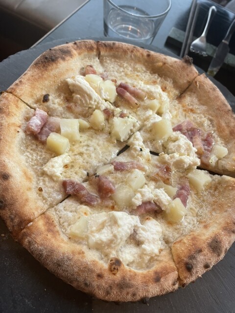 友人とランチに行きました。ニュウマンの6階に入ってます。いつも人気ですぐ入れないので予約をお勧めします。こちらのピザは具材を自分好みのオリジナルピザでオーダー出来るのが魅力的です(^-^)今回はジェノバソースをベースに無花果、チキン、ケールの組み合わせですごく美味しくチョイス出来ました⭐︎席が2時間制だったので、あっという間で最後のデザートも美味しかったのですが、スタッフさんに急かされてしまったので、そこがマイナスポイントでした。味は間違いなかったのですが、最後まで気持ちよくお食事したかったですね。