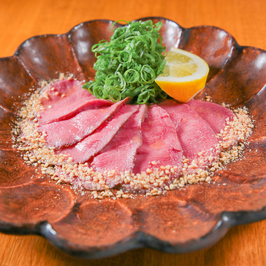牛タン刺しは真ん中にネギがたっぷり、しっかり歯ごたえ系タンでネギを包みながら胡麻もたっぷり贅沢に楽しみました。