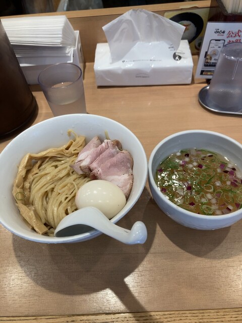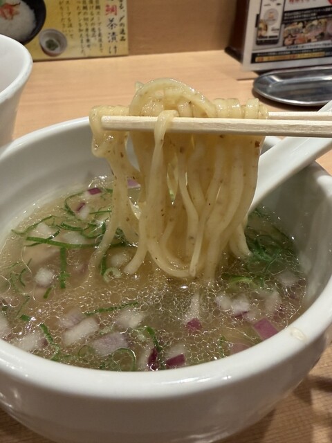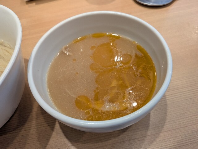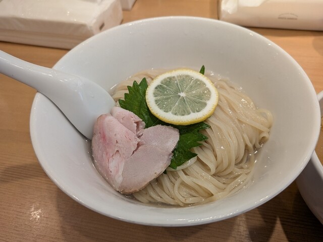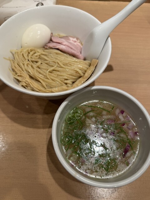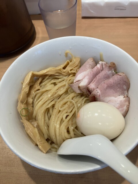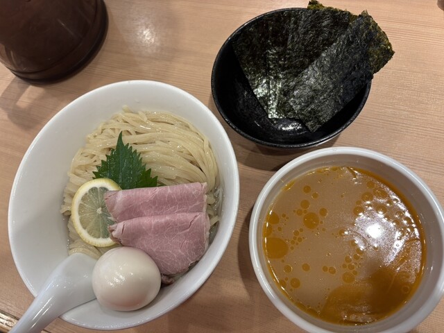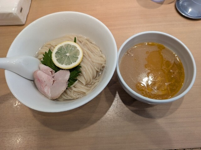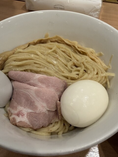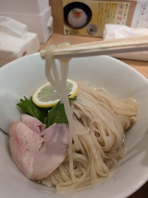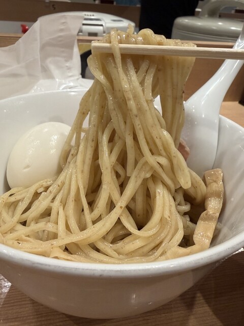 6/1から販売が開始されている、1日40食限定のメニューで、お値段は1,000円。日曜の15時にのこのこ訪れてもまだ残ってました。先客の皆さまはやっぱり金目鯛つけ麺系が多いようですね。 注文すると、店員さんが、「太麺なのでお時間いただきます」と。10分かからないくらいで着丼。麺は、こちらのラーメン... 詳細を見る